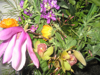 Mas adoro flores e nas jarras lá se vão aguentando. Aprecio particularmente as flores campestres, como estas que vieram do jardim da Z. e que agora perfumam a minha cozinha para me despertar para a alquimia da culinária.